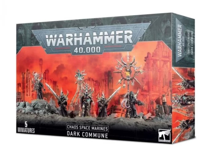 This multipart plastic kit builds a full Dark Commune, consisting of five models one Cult Demagogue, one Iconarch, one Mindwitch, and two Blessed Blades. The members of this wicked cabal are clad in sinister robes, talismans, and daemonic masks r