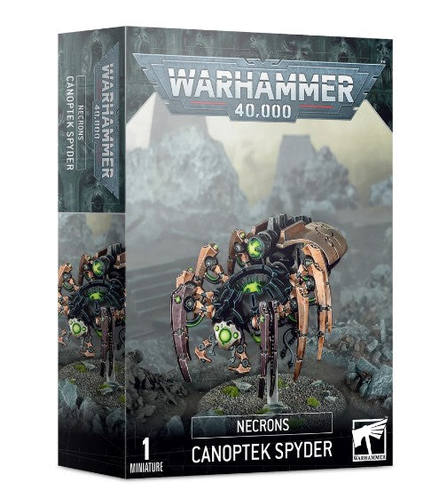 Unlike their Necrons: masters, Canoptek Spyders never sleep, but while away the aeons servicing the structures of their Tomb World. Though the Canoptek Spyder is essentially an automated drone, it is still a formidable foe when the situation demands. A