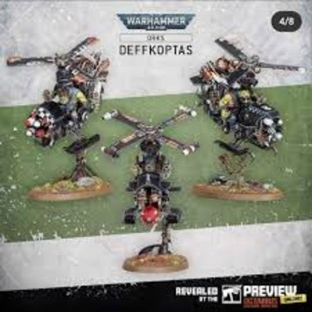 Most Orks: take a dim view of muckin about in the sky, and would much rather go to war with their feet firmly on the ground. Deffkopta pilots are one of few exceptions, hurtling into the sky to spy out enemy forces for their warband, and give those