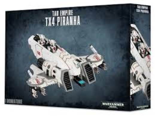 The Piranha is a lightly armoured vehicle used by the T'au in a range of capacities including rapid response, support of pathfinder teams and even as battlefield transport for high-ranking dignitaries. By Upgrading the vehicle to carry a fusion blaste