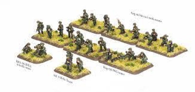 Contains one AK 4 rifle team, three Ksp-58 MG teams with P-skott m/68 OR three Ksp-58 MG teams with P-skott m/86, three Grg m/48 anti-tank teams, one RBS-56 BILL anti-tank missile team, six medium bases and two small bases.