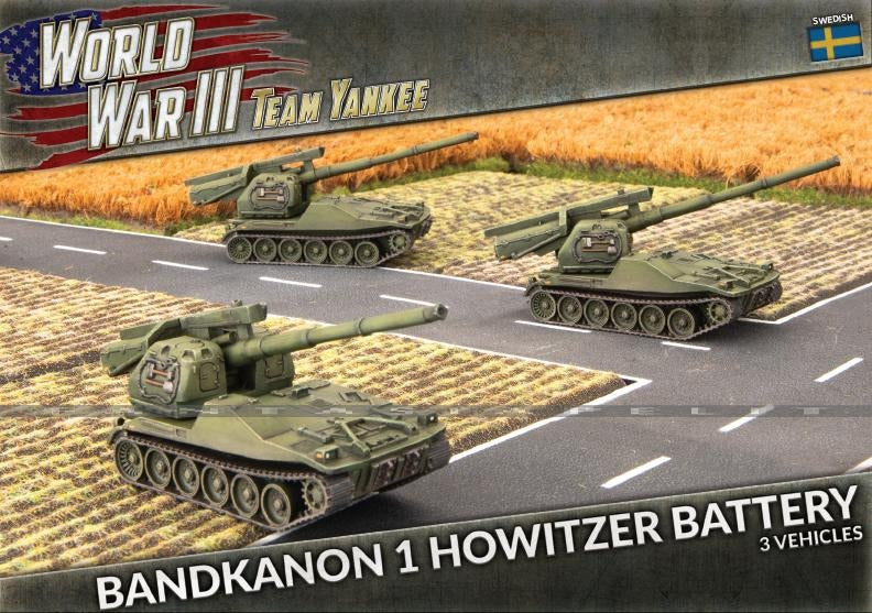 Contains three Bandkanon 1 Self-propelled Guns.x0Dx0Ax0Dx0AThe Bandkanon 1, (meaning ‘tracked cannon 1’), is the primary Swedish self-propelled 155mm cannon. Its chassis was based on a lengthened Stridsvagn 103 S-Tank with one extra road wheel and armed